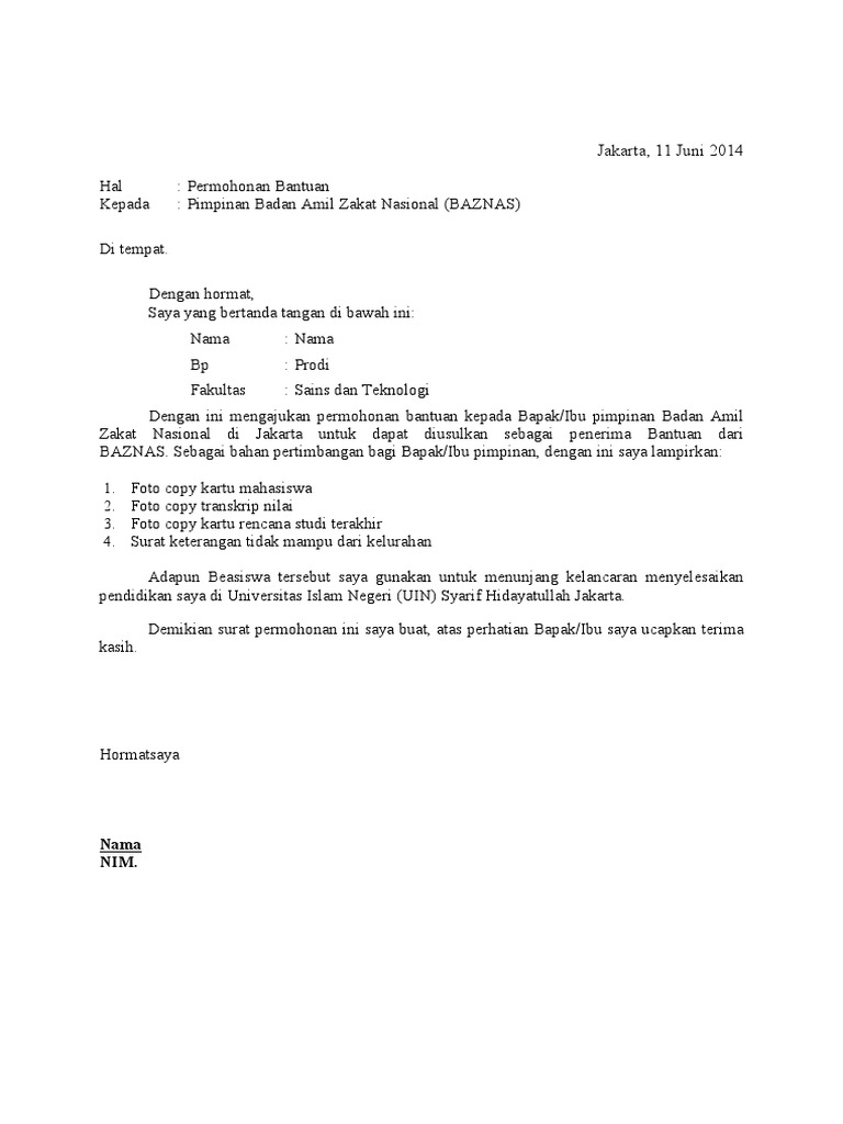 Amil Zakat Contoh Surat Permohonan Bantuan Ke Baznas Nusagates